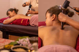 Bij deze behandeling wordt een vorm van warmte op je lichaam toegepast om het effect van de massage te versterken. Het meest gebruikte instrument is de massagezak die gevuld is met aromatische kruiden zoals citroengras, bergamot en kurkuma. De masseur warmt dit op in hete stoom en gebruikt het vervolgens om je spieren te kneden. In een luxe spa worden er ook warme vulkanische stenen langs je energielijn gelegd. De warmte die langzaam van de stenen afstraalt, brengt je in een diepe ontspannen stemming.