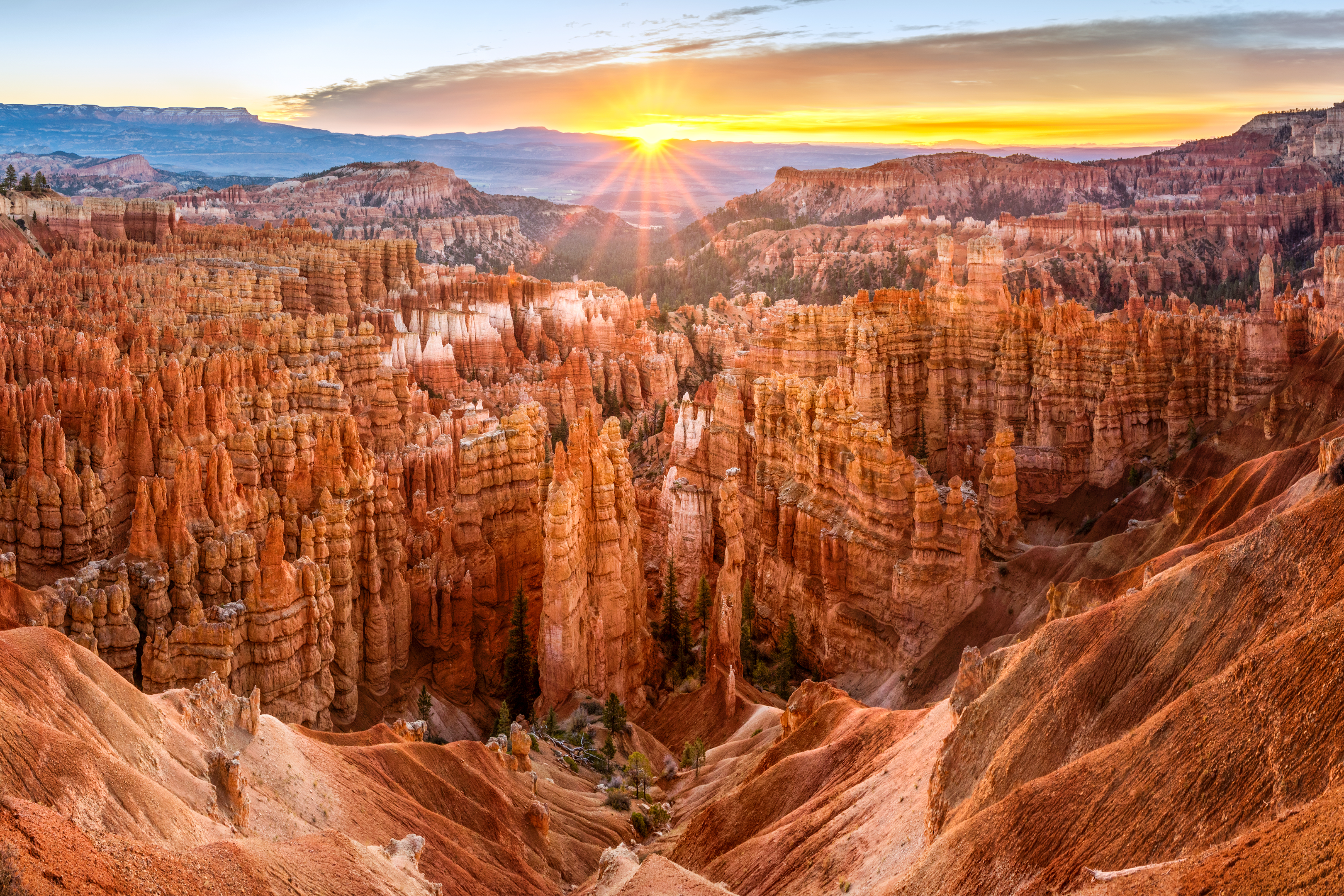 Op een andere plek in Utah ligt het Bryce Canyon National Park. Hoewel de naam anders doet vermoeden, vind je hier geen canyons. Wel zie je er oranjekleurige rotsen en bergen, die ontstaan zijn door een combinatie van water-, ijzer- en winderosie. In dit bizarre landschap vind je verschillende hoodoos; zandpilaren die ontstaan zijn door erosie en inwerking van vorst. Een magisch gezicht! Om dit van dichterbij te bekijken, is het aan te raden om de Navajo Loop Trail te wandelen; een intense, maar fantastische korte hike.