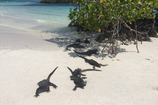 In Puerto Ayora (Santa Cruz): loop vroeg in de ochtend (middag is af te raden vanwege de extreme hitte) vanuit de haven naar tortuga bay. Het is een mooie wandeling naar een bounty strand waar marine iguana’s wonen. In Tortuga Bay zelf kun je een kayak huren en kom je vanzelf zeeschildpadden tegen. Vergeet je snorkel niet mee te nemen! Oh ja en neem genoeg water mee. Dit is een van de weinige plekken op aarde waar er dus ook echt NIKS verkocht wordt op het strand. Ook geen water en dat heb je echt nodig voor de wandeltocht in de hitte.
