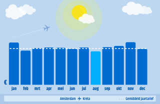 Lange zandstranden, hoge bergen en pittoreske stadjes. Je vindt het allemaal op Kreta. Op Kreta kun je genieten van relaxte strandvakanties. Maar ook actieve vakanties en stedentrips zijn leuk op dit veelzijdige eiland! Het goedkoopste reis je naar Kreta door te boeken in augustus met een vertrekdatum in midden september.