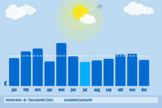 Thessaloniki is meer dan alleen zonnige stad. In deze sfeervolle stad vind je allerlei historische gebouwen, prachtige architectuur, leuke musea en een bruisend stadscentrum. Boeken kun je het beste doen in juli, in deze maand zijn de prijzen gemiddeld het laagste. Je boekt dan met een vertrek in september. Dan maak je de meeste kans op goedkope vliegtickets.