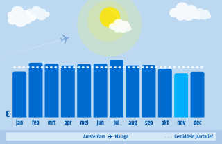 Start jij liever op het strand of in de stad? Er is ontzettend veel te zien in Málaga. Als je alles in de binnenstad gezien hebt, leg je je handoek neer op het Playa de la Malagueta. Het centrum van Málaga is (bijna) geheel autovrij, wat het verkennen van de stad prettig maakt. Boeken naar Málaga doe je in november met een vertrekdatum in begin maart! Dan kun je gemiddeld het goedkoopste vliegen naar die gezellige tapasbar in het centrum of naar het strand waar je de zonsondergang bekijkt onder het genot van een heerlijke paella.