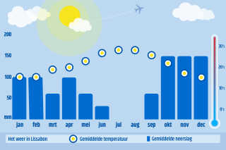 Benieuwd in welke periode je het best weer hebt om te reizen naar Lissabon? Bekijk onderstaande grafiek of lees verder voor de ideale reis- en boektijd per seizoen.