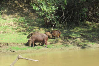 De warmte in de kano is overweldigend en het lijkt onmogelijk hieraan te wennen. Maar al snel vergeet je de warmte en ben je al al meer dan 20 dieren tegen gekomen. Kaaimannen, capibara en piranha's springen uit het water. Onderweg kwamen we ook nog kleine, gele aapjes tegen die nieuwsgierig de boot volgen.