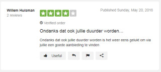 We vinden het ontzettend belangrijk om te weten wat onze klanten van ons vinden. Op deze manier kunnen we constant verbeteringen doorvoeren in onze service. Gelukkig vinden onze klanten dit ook belangrijk. De teller van beoordelingen op Trustpilot.nl staat daarom al op bijna 8000 reviews van klanten. Ontzettend bedankt hiervoor!