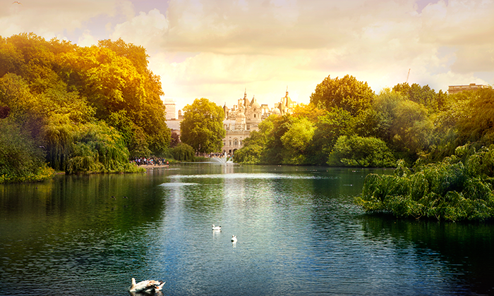 Rond 15:00 uur loop je vanaf het Hyde Park door naar het Green Park vanaf waar je naar Buckingham Palace wandelt. Een bezoek aan Londen is natuurlijk niet compleet zonder dat je de officiële residentie van de Britse koningin hebt gezien. Wil je de wisseling van de wacht zien dan moet je hier iets eerder zijn. Op maandagen, woensdagen, vrijdagen en zondagen kun je hier om 11:00 uur stipt de 'Changing of the Guards' zien.