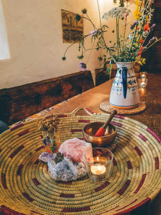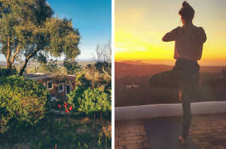 The location of the retreat couldn't have been better. I smile as I think back to that bohemian finca on a hill, overlooking rolling olive tree-covered hills and the shimmering sea on the horizon. I had a beautiful bedroom in a stone cottage, surrounded by a garden filled with lemon and palm trees, cacti, lavender, and rosemary. Throughout the house, there were crystals, sacred wood, flowers, and incense. The resident dog and I became best friends, and the infinity pool was the perfect place to cool off after the lessons.