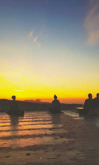 also think back to those magical sunrises and sunsets, the meditations and yoga on the rooftop, the yin yoga on the grass, the deep conversations, the moments of reflection, the tranquility I found, the long wooden table under the tree where we gathered, and the incredible food served daily. The meditations, the comforting words, the soothing yin yoga sessions in the evening, the energizing vinyasa yoga in the morning, the letting go, the realizations, the happiness, the light, the clouds, the feeling of coming home.